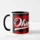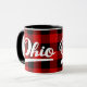Gane un recuerdo maravilloso de Ohio con esta tela escocesa del control del búfalo del estilo rural roja y negra con la taza de café occidental del estilo.