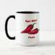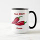 Dos pimientos calientes rojos brillantes a cada lado de esta taza, con las palabras "Papa Red HOT". El texto es personalizable. ¡Qué bien para él!