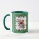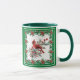 El fondo verde y blanco con las fronteras de Poinsettia y un pájaro mockinero rojo en una rama con bayas de invierno, crea un diseño único, clásico y atemporal.