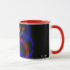 Elevate your next hot chocolate crave with this custom geometric inspired modern coffee mug. This product features a red revolving accented geometric circular theme and personalized custom text.