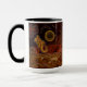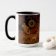 Diseño original de Skye Ryan-Evans (2011) © Se muestra una imagen terrenal sobre Uluru o Ayer's Rock en el centro de Australia. Es un mapa australiano de estilo aborigen de parte del desierto también conocido en Australia, como el Outback. Los diferentes puntos de color representan elementos naturales como las montañas, los cursos de agua, los lechos secos de cala, las fuentes de alimentación como Kangaroo y Goanna, Gecko y Snake, etc. Muchos de los círculos representan pequeñas plantas desérticas que florecen en la temporada de lluvias y las formas florales en el cielo son estrellas en espiral que arden en el cielo y arrojan luz por la noche para los animales nocturnos que deambulan por el desierto al fresco de la noche. La parte central representa el implacable sol del desierto y el calor que genera para llevar vida y muerte al ciclo del desierto. Algunas de las formas animales en el cielo representan los espíritus animales a los que el cazador aborigen agradece cuando toma a un animal para su sustento. La serpiente está relacionada con la creación de mitologías del sueño australiano. En esta representación terrenal, la cabeza y la lengua de la serpiente se arrastra a través de las hierbas secas del desierto y la segunda vista en el cielo, es representativa del espíritu de la serpiente.