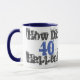 Regalo de cumpleaños 40. Cuarenta años. ¿Cómo pasó 40? es el mensaje gráfico en negrita en esta taza azul y blanca.