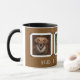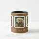 Foto de un perro, o un gato, mamá (o papá). Subir tres mejores fotos mascotas a marcos retro y texto personalizar a lo largo de la parte inferior según sea necesario. Elija un color favorito para el exterior y el interior / asa.
