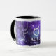 ¿Es tu signo solar Tauro? Si tienes un lado místico, o conoces a alguien que ama leer el horóscopo de su signo zodiacal cuyo cumpleaños cae entre el 20 de abril y el 21 de mayo, ¿qué tal unas tazas de Tauro únicas y personalizadas como un regalo divertido? El diseño original creado por Raphaela Wilson representa el signo astrológico, Tauro el Toro, junto con la constelación de estrellas de Tauro. El fondo es un universo negro, púrpura y azul lleno de estrellas brillantes. Cambia los gráficos svg a cualquier color que desees, y personaliza estas tazas del zodíaco galáctico con un nombre y fecha de nacimiento. Crea tus propios regalos de Tauro personalizados, y diviértete creando. Categoría: tazas de astrología; tazas galácticas; y tazas con plantilla. Colores: negro, púrp