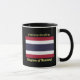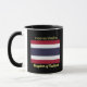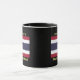 Sobre esta taza: Dice el Reino de Tailandia arriba (en tailandés) la bandera y abajo (en inglés) con letras amarillas sobre un fondo negro.