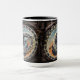fotografía en color de una señal histórica, medieval, un reloj astronómico viejo en Praga en Europa con las muestras azules, anaranjadas, y marrones, de la astrología y los números romanos. fotografía en azules y naranjas de los negros.