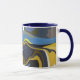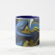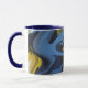 Este diseño presenta un patrón abstracto con varios colores, incluyendo azul, amarillo, blanco y negro. Las formas del diseño se entrelazan de forma ondulada y sinuosa, creando un efecto dinámico y fluido. Este estilo sugiere movimiento y flujo, evocando un sentido de arte abstracto que transmite emociones o ideas indirectamente, sin presentar formas reconocibles o definidas.