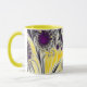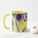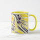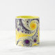 Este colorido trapo combinado presenta un abstracto fractal giratorio en amarillo, negro y morado.