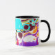Azul, lima verde, púrpura, naranja colorido colorido líquido abstracto de arte digital taza de café.