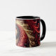 Modernos y abstractos remolinos de rojo vivo, negro y oro aportan vivos tonos inspirados en la buena suerte, el Año Nuevo y los cálidos fuegos de la vida.