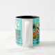 Sirva para arriba algo especial con esta taza retra de la fuente de soda. El arte minimalista, características del diseño del dibujo del dibujo animado el interior del punto más fresco de la ciudad. ¡Es una fuente de soda de los años 50, en toda su gloria kitschy! Contra el contexto del aguamarina pared, podemos ver los posters el hacer publicidad de las especialidades de la casa. Un poster muestra una hamburguesa y una botella de estallido para el precio de saldo de 15 centavos. El otro poster muestra a dos cucharadas de helado en un cono del azúcar para simples 5 centavos. ¡Con precios tenga gusto de éstos, él debe ser difícil mirar su cintura! Un tirón de soda más competente está sirviendo el contador verde azulado con acentos amarillos. El hombre joven con los éticas de trabajo fuertes está sosteniendo un cono de helado con una sola cucharada del helado amarillo limón--¡aunque, ser justo, podría ser piña! El chaval del limpio-cut está llevando una camisa prístina, blanca con un negro, la pajarita y un gorra blanco con acentos rojos. En el lado opuesto del contador, vemos tres taburetes de bar rojos y del cromo. Se encarama en uno de los taburetes un teenybopper rubio cuya boca está regando seguramente. Es confuso si su boca está regando sobre el cono de helado que se dirige su manera o el hombre joven industrioso que la está sirviendo. Ella está llevando una falda rosada del caniche y un top del negro del ajuste de forma. Sus cerraduras amarillas se tiran en una cola de caballo clásica. Al lado de este cutie de un cliente hay una máquina tocadiscos colorida, clásica, que ofrece el grano marrón, de madera, el revestimiento de madera y luces de neón coloridas. ¡Mejore que eso, él está seguro de ofrecer todos los golpes más grandes del rock-and-roll del tiempo! El piso de esta sala de helado moderna de los mediados de siglo es aguamarina y el trullo, el modelo del tablero de damas que apenas está gritando para que alguien intente toda la última danza se mueve.