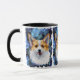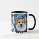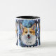 ¡A cualquiera que haya perdido el corazón por un adorable Perro Corgi le encantará esta atractiva jarra! Presenta una representación artística de un Corgi galés pembroke que mira desde un fondo abstracto pintado. Los colores predominantes en el fondo son el negro, el azul, la lavanda, con un toque de agua. Los colores cálidos y fríos del retrato del perro destacan bellamente desde el fondo. La imagen se repite alrededor de la taza, y la imagen central tiene texto personalizado en escritura negra que dice "Corgi". Puede personalizar del texto, personalizarlo o incluso eliminarlo si lo prefiere.