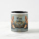 Dos lados de esta taza para el hincha francés del Bulldog muestran un retrato de cerca de una pequeña francesa marrón tendida en la cabeza entre las patas. El texto en el centro dice "Bulldog francés" pero puedes personalizarlo fácilmente o cambiarlo a cualquier otra cosa que quieras.