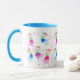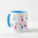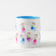 Una taza de bonito de jengibre blanco con el borde y mango azul polvo, decorada a todos lados con hadas bailarinas, polvo esparcido de hadas, de una pintura acuarela de Judy Adamson. También hay disponibles tarjetas de felicitación, camisetas e invitaciones para fiestas.