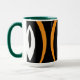 Este diseño presenta formas suaves y fluidas en naranja, blanco y negro. Parece pétalos o olas, lo que le da un aire audaz y moderno.