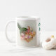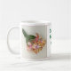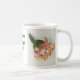 Un cactus de navidad rojo y amarillo bonito adorna esta taza de café tradicional. La floración es la de la llama del navidad del cactus de navidad. El texto se puede cambiar para incluir el nombre u otro messsage personalizado de un amigo.