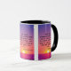 Esta taza de dos tonos muestra un tipo de letra de impresión tamrin con letras negras que muestran el versículo de la biblia de KJV "Romans 5:8" sobre una imagen de fondo que presenta una vista de la costa que muestra una puesta de sol brillante bajo este vibrante cielo coloreado en este tema de la vista del océano. Este verso hace referencia al quinto capítulo del Libro de los Romanos que muestra el octavo verso de esta escritura biblia, el tema de la cita de la Biblia del Rey James. La llanta y la manija están vidriadas en colores que coinciden disponibles en la construcción de cerámica segura de microondas y lavavajillas de 11 onzas o 15 onzas.