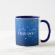 Añade vibraciones creativas a tu bebida favorita con esta taza, que cuenta con una miríada de estrellas, cercanas y lejanas, relucientes contra un fondo del cielo azul medianoche que se transforma en negro, con la palabra "dreamer", ambientada en un elegante guión fluido. Personalice como desee. Diseño © W.H. Sim. Ver más en zazzle.com/expressionsoccasions