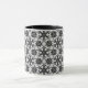 Mug en un patrón digitalmente mejorado y colorido basado en encaje antiguo - encaje negro sobre fondo blanco