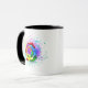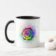 Rosa grande y floreciente con pétalos de arco iris sobre fondo blanco, pintado con salpicaduras de pintura colorida y brillante. 3.ª