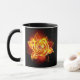 Rosa en llamas del fuego y la llama sobre fondo negro.