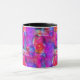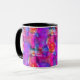 Taza Rosa del arte, azul, fondo rojo de la textura