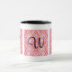 Modelo retro del diamante en rosa, rojo y oro con iniciales negras intrépidas del monograma en su opción de tazas.