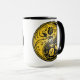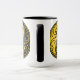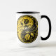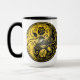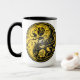 Las características del este del yin diseño hermosas de yang dos stylized rosas tribales. Los remolinos amarillos y negros complejos adornan ambos lados de este símbolo tradicional que crea un modelo delicado. Las dos flores fluyen de la parte inferior de la lágrima por ambas partes con las hojas que crecen de los troncos. Este yin único yang hace un diseño imponente y elegante de la taza.