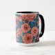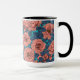 Taza Rosas rosas rosas con hojas azules en azul