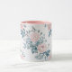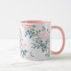 Hermoso lindo estilo retro estilo floral femenino de flores rosadas con hojas azules y verde azuladas sobre fondo blanco.