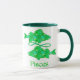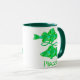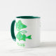 Mug en el símbolo del símbolo solar astrológico Pisces, en un patrón fractal de marea y verde esmeralda