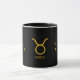 Abran la mística de la astrología con nuestro signo zodiaco - Taurus - taza de café con detalles en color amarillo dorado, con el capricho del Rótulo Taurus sobre un fondo negro y elegante. Personalizar con tu nombre y ahórrate en el místico reino de los signos y horóscopos de las estrellas. Este moderno tazón, adornado con elegantes detalles, es un regalo perfecto para los amantes de la astrología y para aquellos que aprecian la elegancia personalizada.