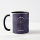 Abran la mística de la astrología con nuestro signo zodiaco - Gemini - taza de café con detalles de color blanco, con el capricho del Rótulo Gemini contra un fondo de color morado oscuro con estrellas. Personalizar con tu nombre y ahórrate en el místico reino de los signos y horóscopos de las estrellas. Este moderno tazón, adornado con elegantes detalles, es un regalo perfecto para los amantes de la astrología y para aquellos que aprecian la elegancia personalizada.