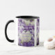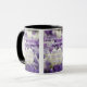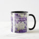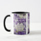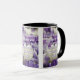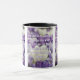 Esta taza de dos tonos muestra un tipo de letra hermano con un contorno de letras blancas violetas que presenta el versículo de la biblia KJV "Salmos 27:1" sobre una imagen de fondo que muestra una colección de flores moradas y blancas con una vista de arriba en este tema floral. Este verso hace referencia al capítulo 27 del Libro de los Salmos, que muestra el primer verso de esta escritura biblia, el tema de la cita de la Biblia del Rey James. La llanta y la manecilla están acristaladas con colores a juego disponibles en la construcción de cerámica de microondas y lavavajillas de 11 onzas o 15 onzas.