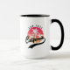 Mug de San José con un diseño que incluye una puesta de sol retro. Este diseño también tiene a California en un tipo de letra manuscrita con un glifo de cruz para ese elegante estilo retro. Esta taza es sólo para ti si eres de San José o para regalarte un recuerdo.