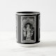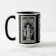 Esta imagen en blanco y negro es una elaboración de 1889 de un prototipo de cromolitografía de 1878. (Ver nuestra huella dorada a todo color de San José, Protector de la Iglesia, COLLECTION [VVP 09]). Su publicación coincidió con la promulgación de una "Oración a San José", escrita por el Papa León XIII. Se incluyó en su encíclica conocida por sus palabras iniciales en latín como "Quamquam Pluries" (Quamquam Pluries), es decir, "Aunque muchas veces..." sobre devoción a ese santo. + Aquí, San José se representa contra un cielo estrellado en un marco arquitectónico eclesiástico de estilo gótico. Sostiene un rociado de lirios que simbolizan la pureza en la mano derecha y el gobierno de un carpintero en forma de L, indicativo de su profesión en la izquierda. + Además de estos atributos tradicionales, sin embargo, varios elementos de la composición hablan directamente de su papel como patrocinador de la Iglesia, entre ellos, en particular, varios textos en latín. A la izquierda, un ángel descendente despliega un pergamino que dice: "Anno Domini 1870 muere VIII decembris, Pius PP.IX, beatum patriarcham Josephum Ecclesiae catholicae patronum solemniter declaravit", es decir, "En el año de nuestro Señor 1870, el octavo día de diciembre, Papa piélago IX declaró solemnemente al bendito patriarca Joseph patrocinador de la Iglesia Católica". A la derecha, en el campo sobre otro ángel descendente hay un banderol que dice: "Constituit me dominum" y luego boca abajo "domus sua(e)", o "Me nombró supervisor de su propia casa". Aunque no es una cita directa de la versión latina de la Biblia conocida como el Vulgate, este texto recuerda el Génesis 39.4 y el Génesis 41.40. Estos dos versos se refieren al antiguo Testamento de San José, el anterior José del Escudo de Muchos Colores que fue puesto a cargo primero de la casa de Potipher, luego del faraón, durante su estancia en Egipto. Y en su halo están inscritas las palabras "Santo José: Patrono Ecclesiae:OPN [Ora Pro Nobis]", es decir, "San José, Patrono de la Iglesia, Reza por nosotros". + Los elementos visuales refuerzan el lenguaje verbal. El segundo ángel descendente muestra un escudo de armas papal genérico con la corona o tiara de tres niveles del Papa y dos llaves cruzadas, las "llaves del Reino del Cielo" (Mateo 16:19). Emanando del escudo, los rayos de luz apuntan a un pequeño dragón, una corona, un pergamino y un globo grabado con los nombres de los continentes poblados: Asia, Australia, América (del Norte y del Sur), África y Europa. El dragón significa Satanás; el pergamino dice: "No servirán", es decir, "no servirán", frase que resume el rechazo de Satanás a Dios. (En algunos periódicos, la palabra ‘Liberalismo’ aparece debajo de las palabras de Satanás.) La imponente figura de San José pisotea el poder de Satanás sobre el mundo aplastando al dragón bajo sus pies derribando la corona de la cabeza del dragón. + Rojo es el acento tradicional y el color de borde para las impresiones devocionales de este estilo. + Esta imagen existe en varias variaciones: con o sin marcos (marcos, donde existen, van desde una simple caja roja hasta embellecimientos de impresoras multielemento), con o sin acentos rojos, con las palabras ‘Ora pro nobis’ escritas o abreviadas, y con o sin la palabra ‘Liberalismo’ en el desplazamiento de Satanás como ya se ha señalado. + Crédito de la imagen (DT 01 ): litografía antigua de Sancte Joseph, Patronus Ecclesiae [San José, Patrono de la Iglesia], publicada originalmente por Desclée, Lefebvre et Cie, Tournai, Bélgica, 1889, de la colección privada de ephemera religiosa del diseñador.