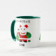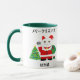 Gato afortunado vestido como Santa con un árbol de Navidad y adornos. Un regalo de Navidades divertidos y únicos que te trae buena suerte. "Feliz Navidad" y "Maneki Neko (Gato Suertudo)" en japonés.