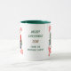 En esta taza de Navidad para niños y adultos por igual, Santa Claus se encuentra frente a una cabaña forestal al lado de un pequeño oso pardo. El texto rojo dice "Lo que sea que te arruine las campanas". La imagen se imprime dos veces en la taza, con el texto de su personalizado entre ellas. Es fácil cambiarlo a lo que quieras, y esto es un gran regalo para los vecinos y amigos, sobre todo cuando están llenos de dulces de Navidad.