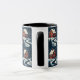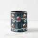 This striking coffee mug features a bold, seamless repeating pattern inspired by traditional Scandinavian folk art. The illustration depicts cozy red cottages and stylized evergreen trees against a dark, snowy background. The high-contrast design creates a warm and nostalgic winter atmosphere, perfect for curling up by the fire. This unique mug is a lovely holiday gift for those who cherish Nordic design, graphic patterns, or distinctive home décor during the winter season.