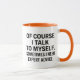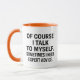 This motivational self-talk mug is perfect for coffee lovers. It features inspiring phrases that encourage self-reflection. The mug displays "OF COURSE I TALK TO MYSELF" and "SOMETIMES I NEED EXPERT ADVICE"—a humorous way to start conversations and provide daily motivation. A thoughtful gift for anyone who appreciates introspection and personal growth, helping to make mornings more enjoyable and promote self-acceptance.