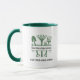 Una taza con un ilustracion de herramientas de jardín monograma que incluye pan, rastrillo de hojas, pala y pasto rústico. Perfecto para un cumpleaños profesional de jardinero o para promocionar su negocio cuando usted trabaja.