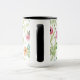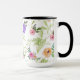 Este café picante chic de estilo shabby tiene flores rosas, flores amarillas, flores púrpuras y flores rojas en un campo de hojas verdes.