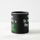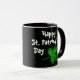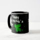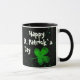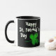 Shamrock Clover Irish Happy St. Patrick's Day Mug. Un texto del Feliz Día de San Patricio con shamrock irlandés verde para suerte en un fondo negro. Puede cambiar el texto.