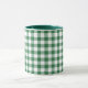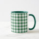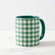 Una taza de moda de Ringer Blanco, con el labio y la manija verde oscuro y un patrón de Check Gingham que se coordina con la colección "Shamrock" de Posh & Painterly; este patrón se puede ajustar para que se ajuste a cualquier taza.