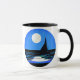 Mug en una silueta negra de un velero contra un cielo nocturno con luna y estrellas, reflejado en el agua