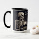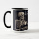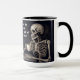 Estos esqueletos son muy optimistas. Están sentados alrededor de la mesa en el barco pirata uno frente al otro. Uno dice "Podría ser peor...". El otro dice "sí, ¡podríamos estar sin café!" Disfruta de la taza de personalizable. Puedes cambiar el dicho así como los nombres de los tazones que tienen los personajes.