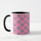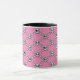 El cráneo divertido y los huesos cruzados con motivos en un fondo rosado son tan ondulados.