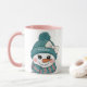 Spread holiday cheer with this adorable Happy Snowman Face coffee mug! It's easily personalized with any name for a custom Christmas gift. Features a charming red and green bow detail.