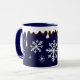 El chocolate caliente está goteando por esta taza de copo de nieve. ¡Este tazón de café con copas de nieve es genial para las vacaciones o cualquier día! Los diseños son de arte original.