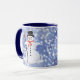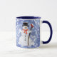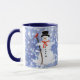 Feliz hombre de nieve con un pájaro cardinal. ¡Que nieve! ¡Vamos afuera y construyamos un muñeco de nieve!